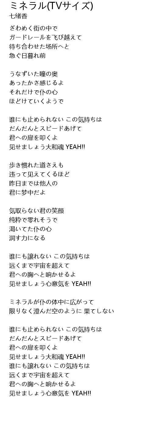 | Song | ミネラル(TVサイズ) |