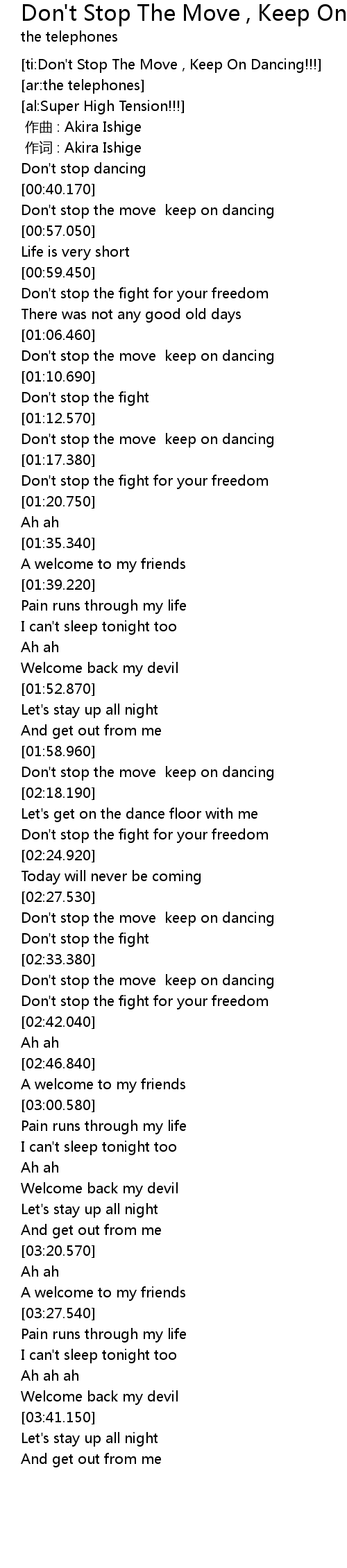 | [ti:Don't Stop The Move , Keep On Dancing!!!] | |