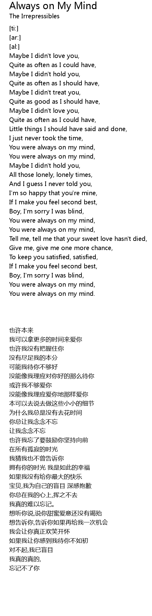 You were always on my mind, |
