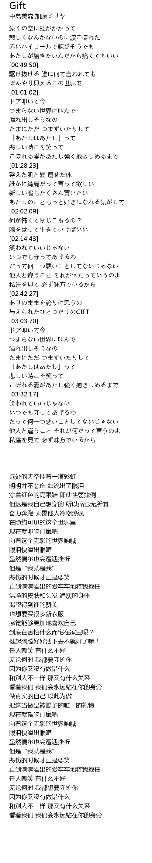 | [02:58.38] | 与えられたひとつだけのGIFT |