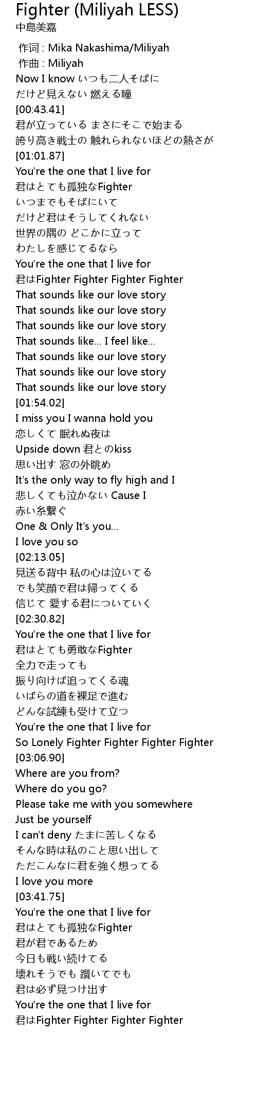 | [01:31.74] | 君はFighter Fighter Fighter Fighter |