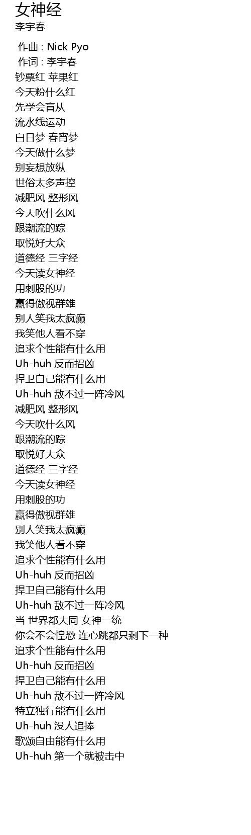 | [00:53.92] | jīn tiān dú nǚ shén jīng |