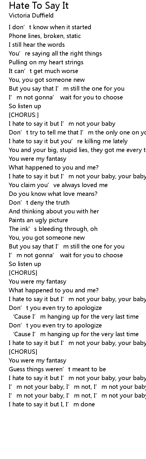 | I hate to say it but I' m not your baby, your baby | |