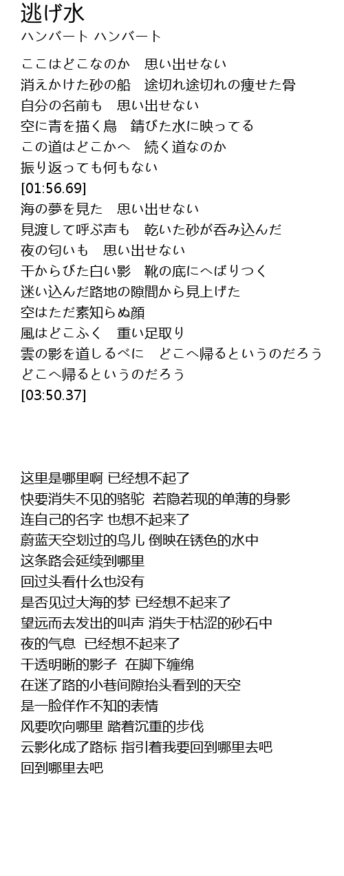| [00:58.99] | 消えかけた砂の船 途切れ途切れの痩せた骨 |