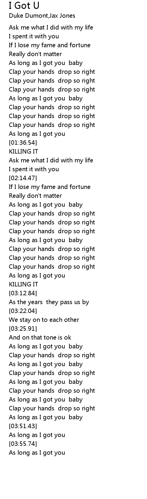 As long as I got you baby |