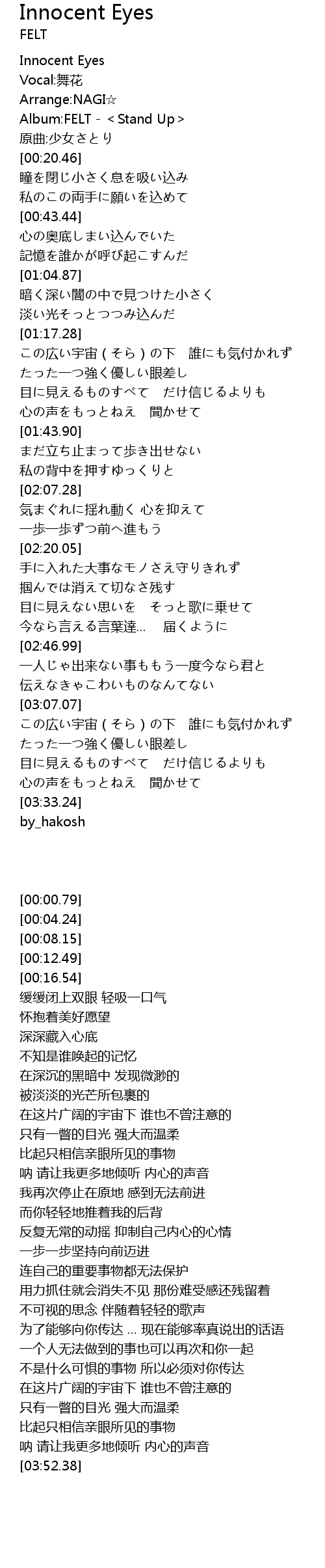 | [00:00.79] | Innocent Eyes |