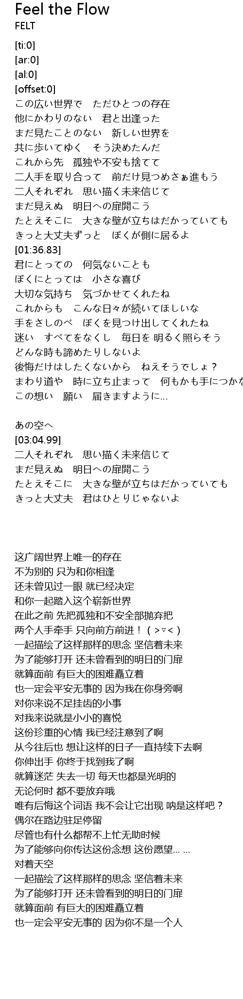 | [03:38.60] | きっと大丈夫 君はひとりじゃないよ |