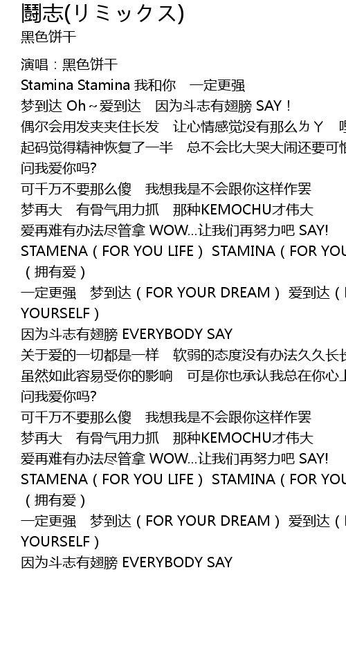 | [00:35.79] | Stamina Stamina 我和你 一定更强 |