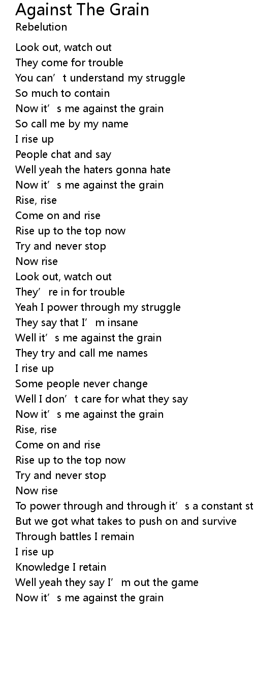 | Well it' s me against the grain | |