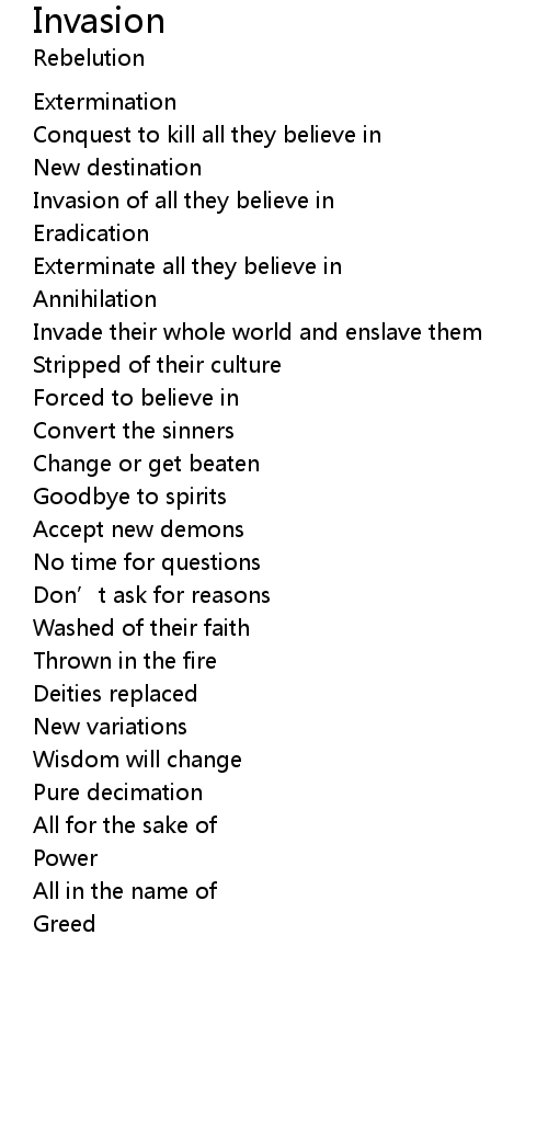 | Invasion of all they believe in | |