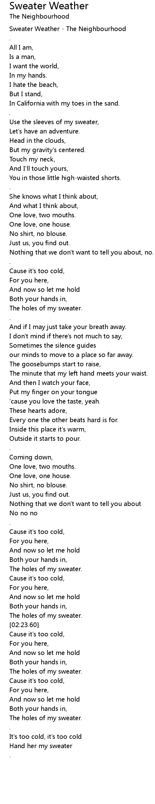 Sweater Weather - The Neighbourhood |