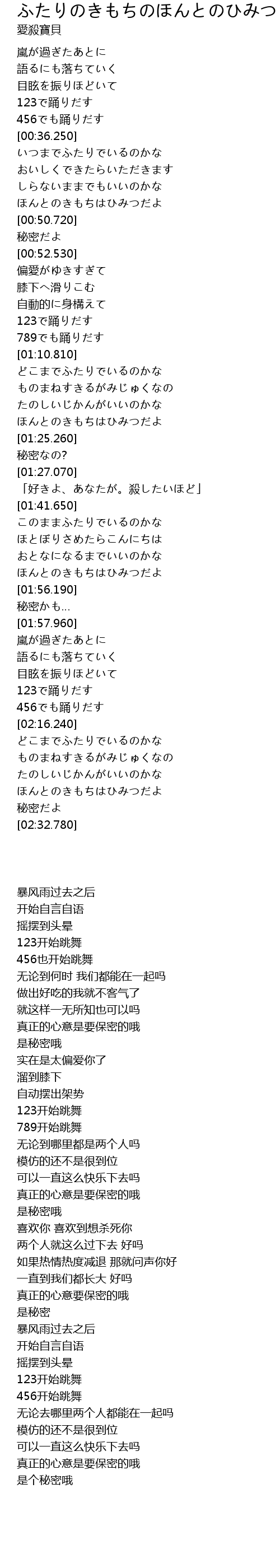 | [00:47.510] | ほんとのきもちはひみつだよ |