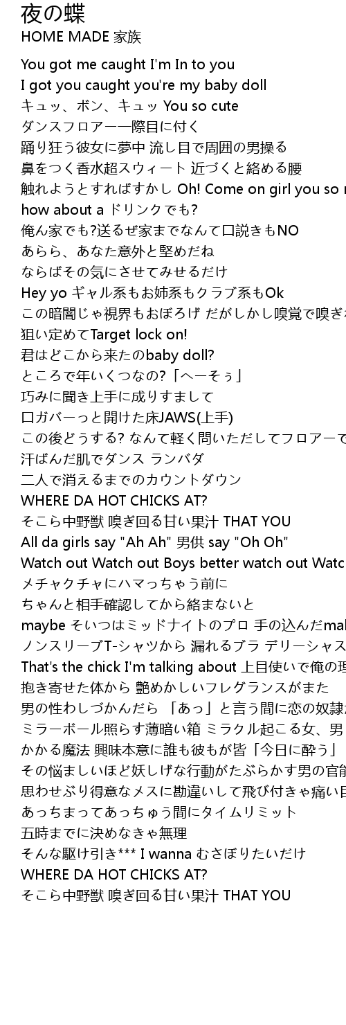 | Song | 夜の蝶 |
