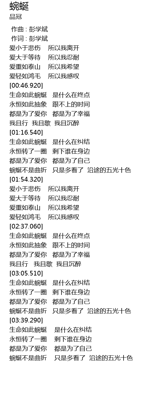 | [04:01.960] | 蜿蜒不是曲折 只是多看了 沿途的五光十色 |