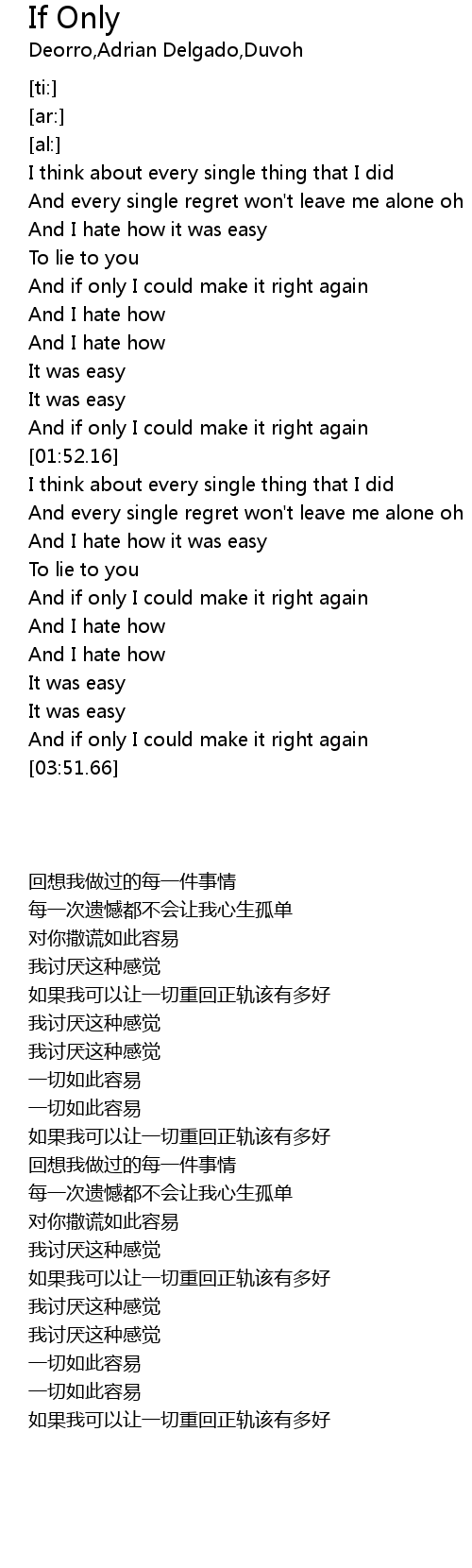 | [03:28.59] | And if only I could make it right again |