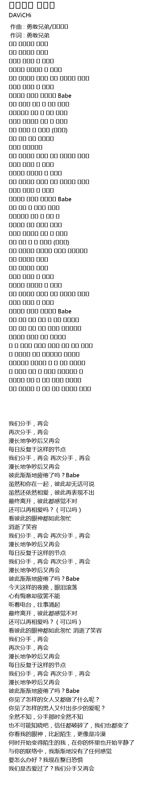 | [00:01.00] | 作词 : 勇敢兄弟 |