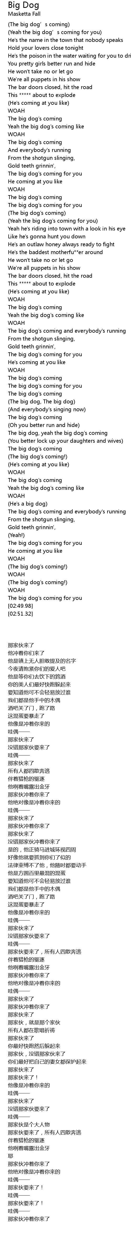 | [01:51.61] | The big dog's coming |