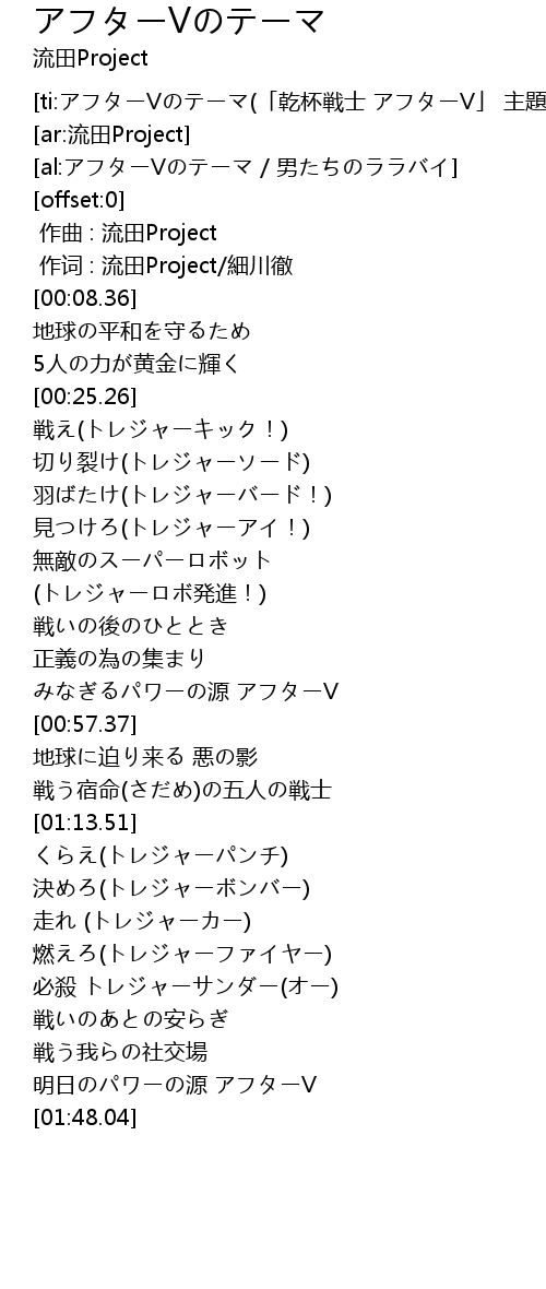 | [ti:アフターVのテーマ(「乾杯戦士 アフターV」 主題歌)] | |