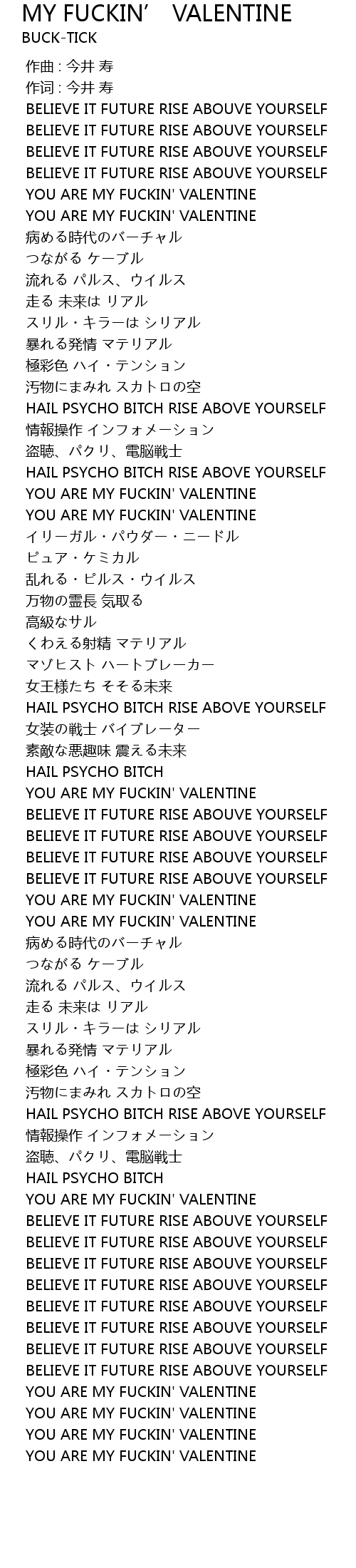 | [01:53.035] | YOU ARE MY FUCKIN' VALENTINE |