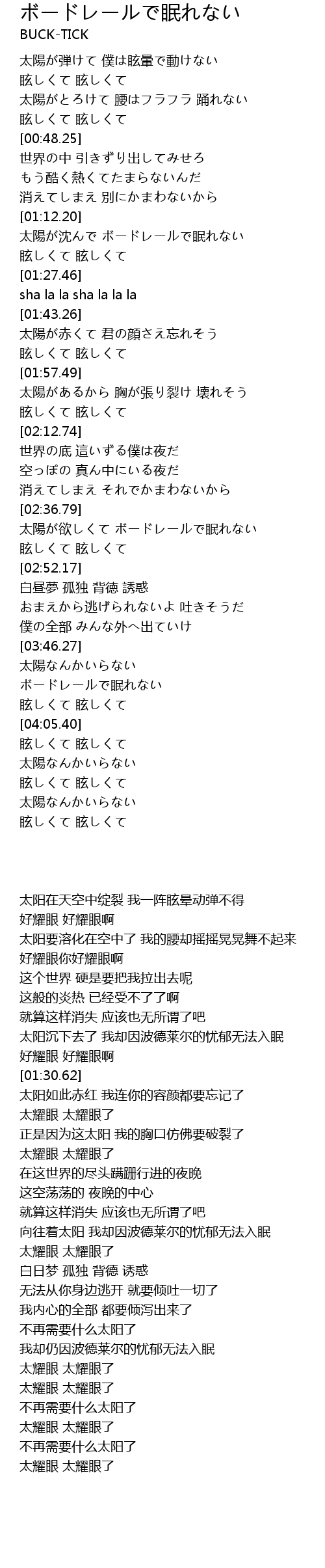 | [02:38.21] | 太陽が欲しくて ボードレールで眠れない |