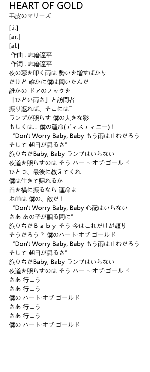 | [02:26.07] | “Don't Worry Baby, Baby 心配はいらない |