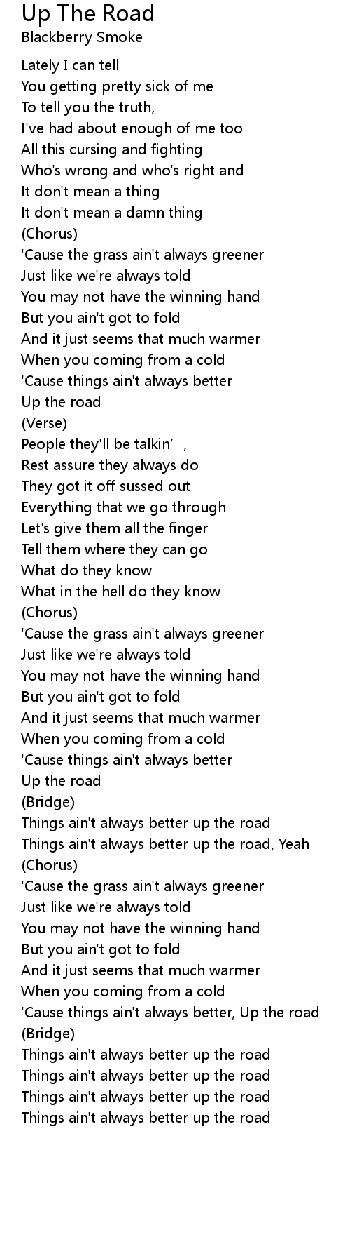 | ' Cause things ain' t always better, Up the road | |