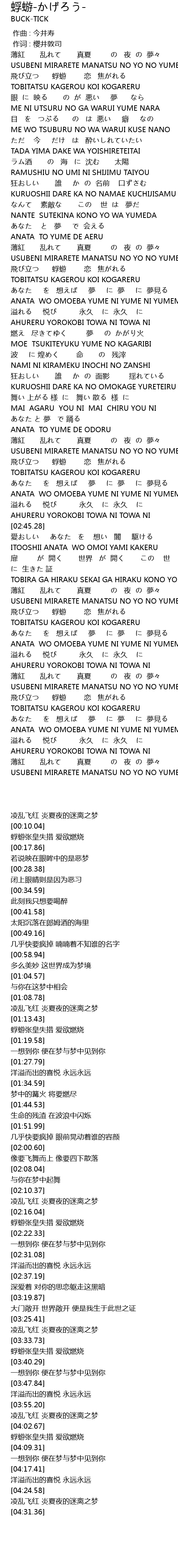 | [02:16.04] | USUBENI MIRARETE MANATSU NO YO NO YUMEYUME |