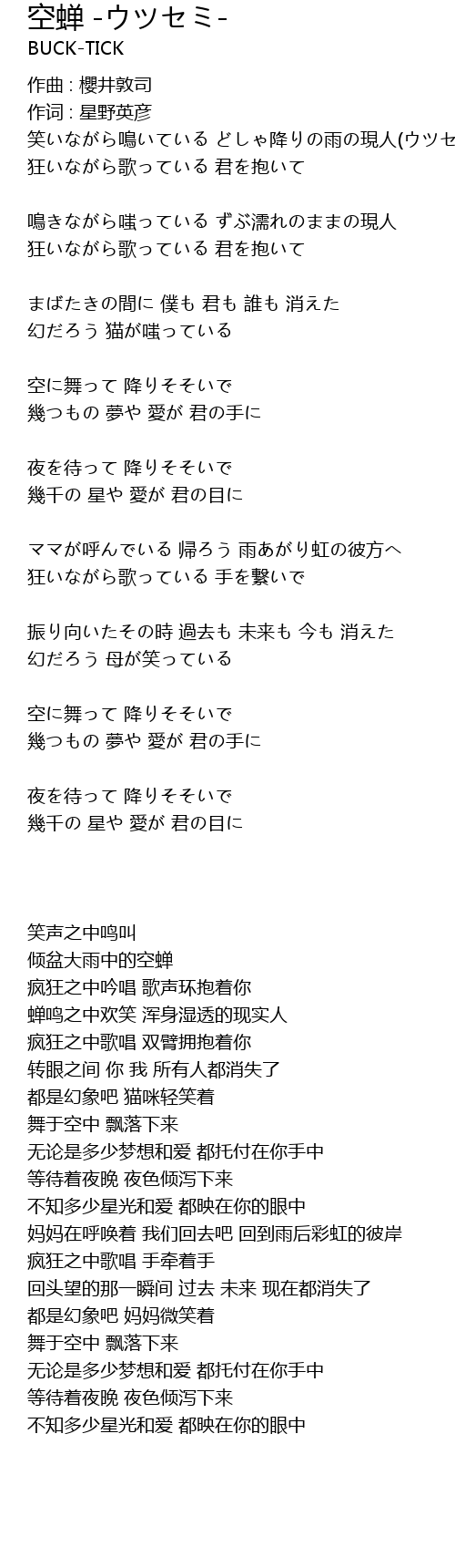 | 作词 : 星野英彦 | |