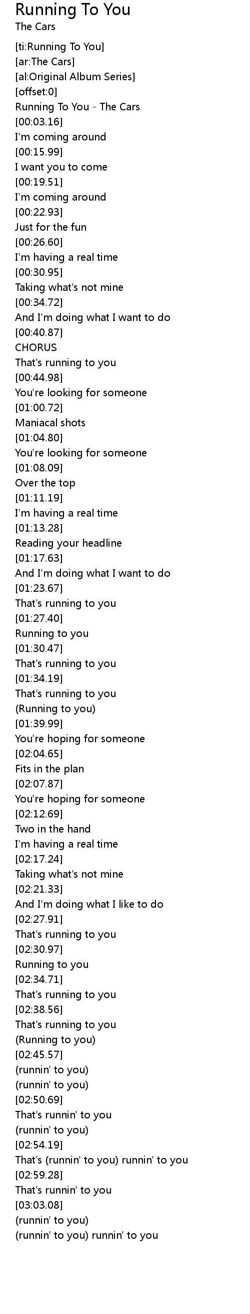[00:01.12] Running To You - The Cars