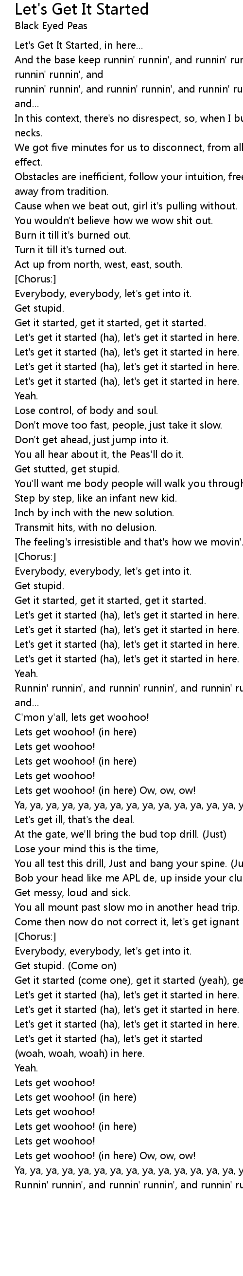 Let's get it started (ha), let's get it started in here. |