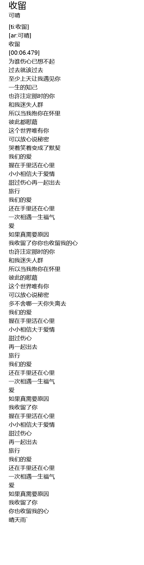 | [02:44.686] | wǒ shōu liú le nǐ |