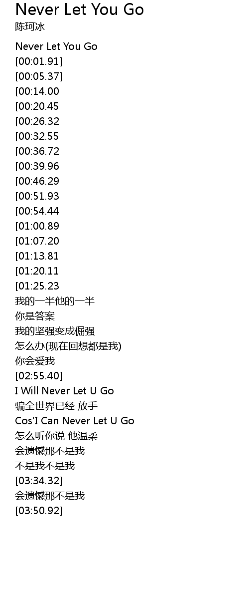 | [02:15.36][00:54.44] | I Will Never Let U Go |