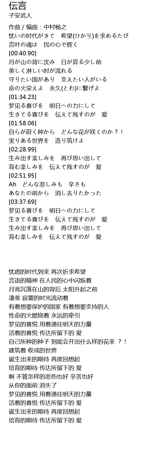 | [03:49.51] | 生きてる喜びを 伝えて残すのが 爱 |