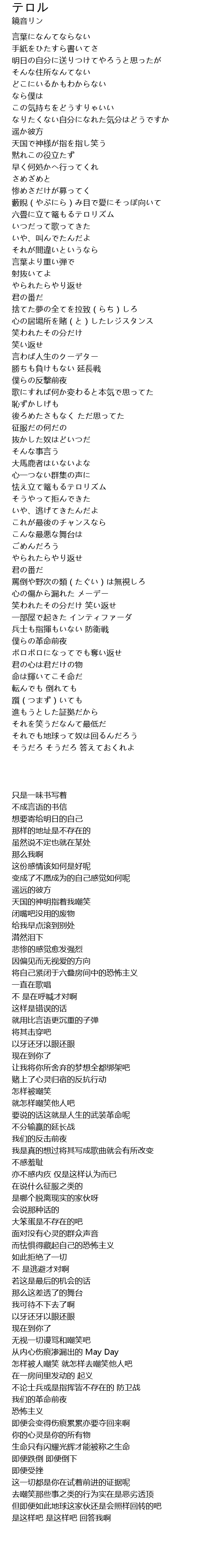 | [00:45.470] | 六畳に立て篭もるテロリズム |