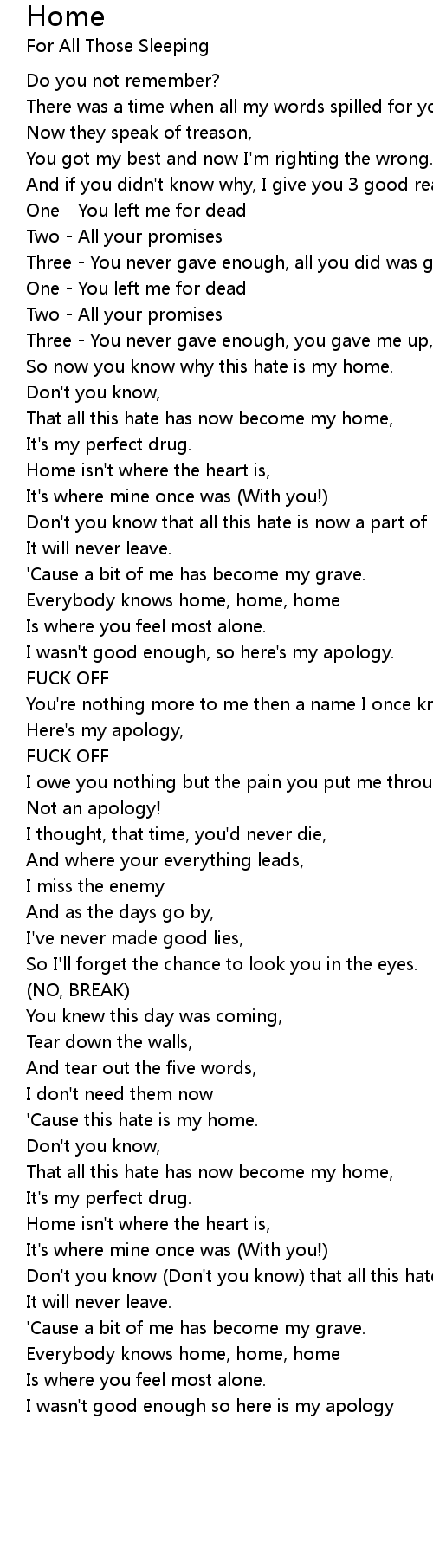 So now you know why this hate is my home. |