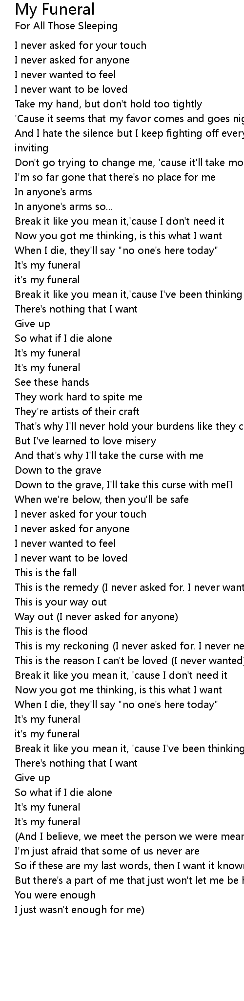 | Song | My Funeral |