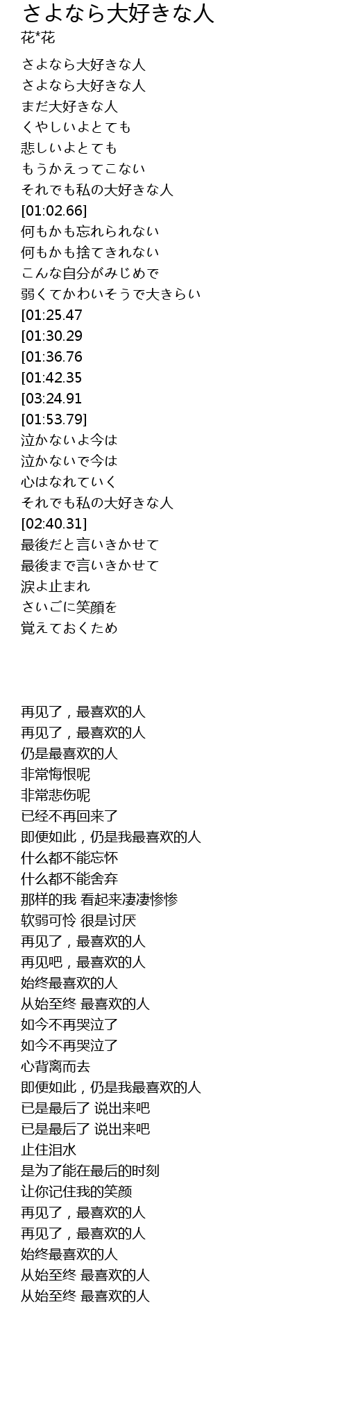 | [03:14.64][01:36.76] | さよなら大好きな人 |