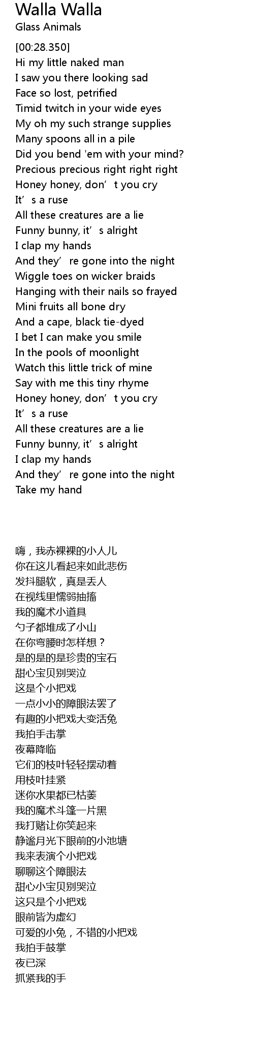 | [01:59.290] | Honey honey, don' t you cry |