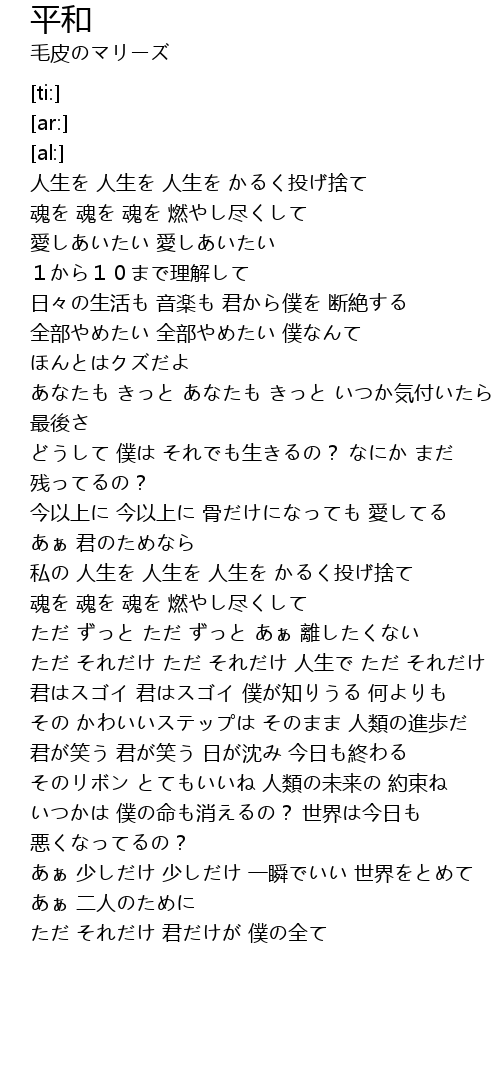 | [03:42.63] | いつかは 僕の命も消えるの? 世界は今日も 悪くなってるの? |