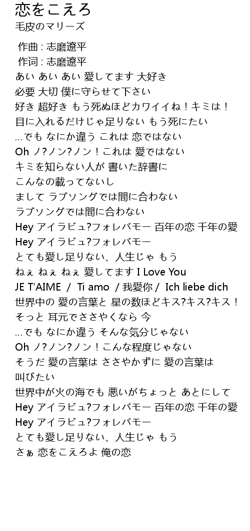 | [02:03.38] | Hey アイラビュ?フォレバモー 百年の恋 千年の愛 |