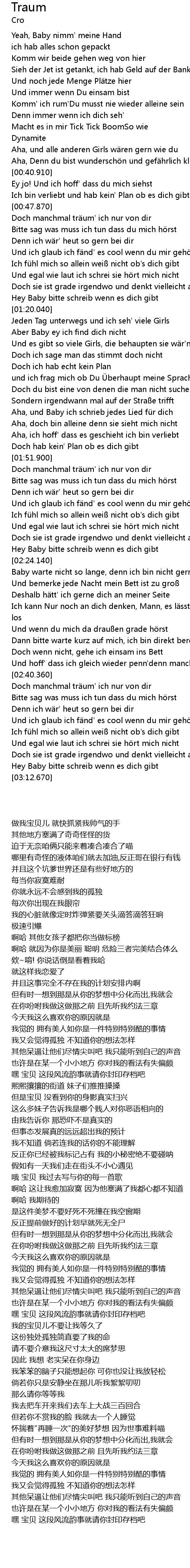 | [02:40.760] | Doch manchmal träum' ich nur von dir |