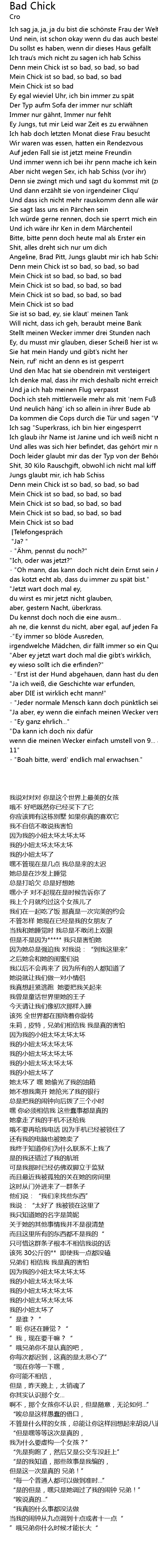 | [02:31.700] | Mein Chick ist so bad, so bad, so bad |