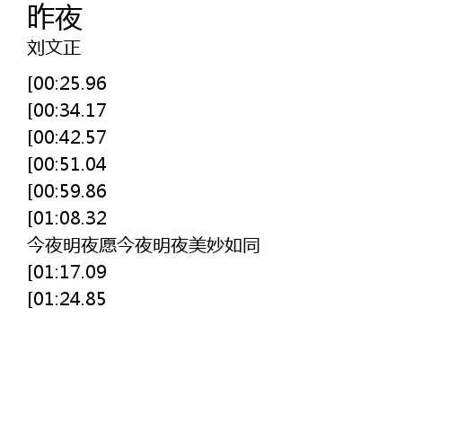 | [02:07.16][00:42.57] | 昨夜你为我轻轻的唱 昨夜你为我缓缓飞舞 |