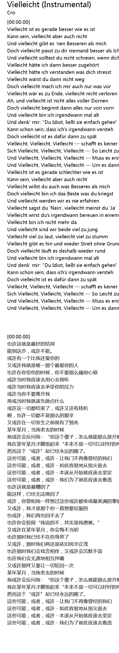 | [01:59.25] | Und Vielleicht, Vielleicht, Vielleicht — Um es dann zu kapieren |