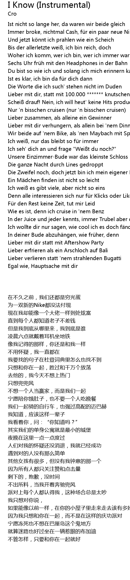 | [00:45.43] | Immer broke, nichtmal Cash, fü r ein paar neue Nikes |