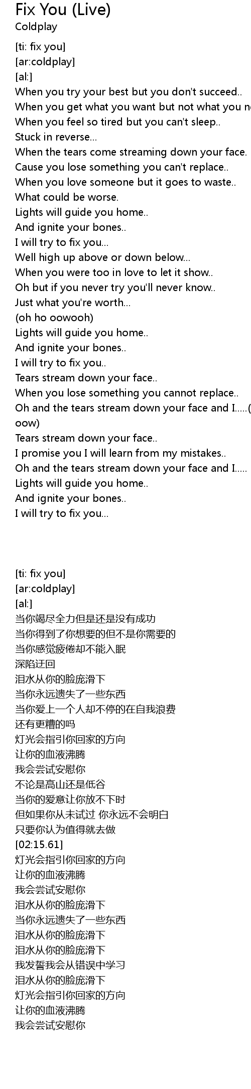 | [03:48.64] | Oh and the tears stream down your face and I.....(ooooooo.oh ho oh oow) |