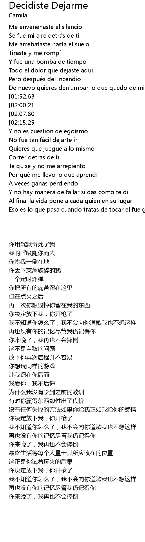 | [00:46.74][01:52.63][02:39.25] | Tu decidiste dejarme tu disparaste primero |