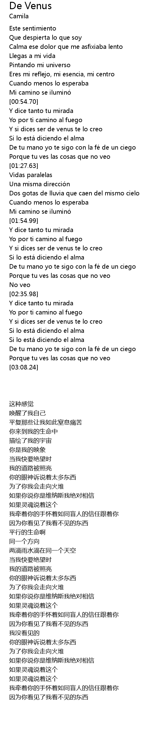 | [02:55.18] | De tu mano yo te sigo con la fe de un ciego |