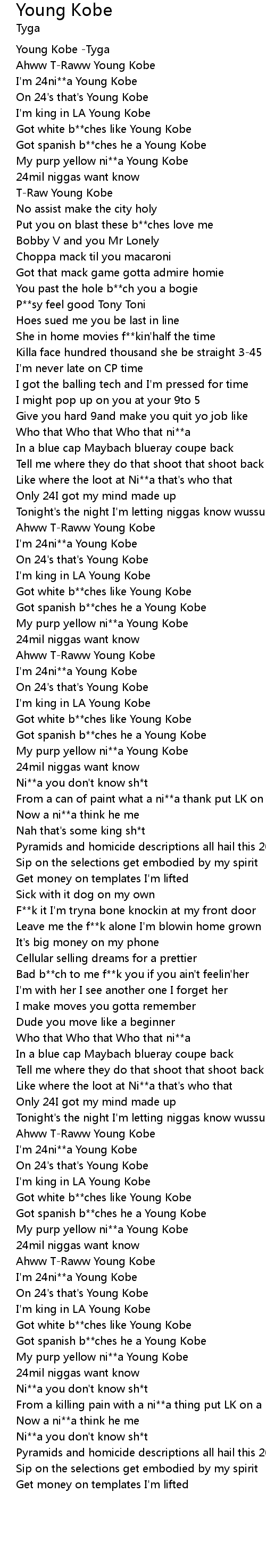 Young Kobe -Tyga |