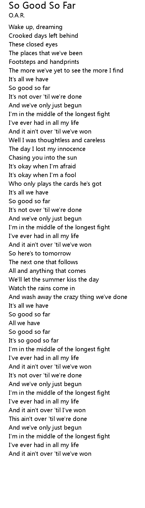 So good so far |